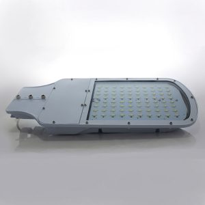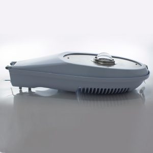 Luminaria de alumbrado público 50W en gabinete en aluminio anodizado y tecnología MODULE LED, con LED marca BRIDGELUX de alta eficiencia lumínica con un patrón de iluminación OVAL gracias a su óptica secundaria de boro silicato recortada tipo AII. Con fuente de alimentación con un alto factor de potencia otorgando así un 90% mayor eficiencia; supresión de picos de 10 KVA por separado.